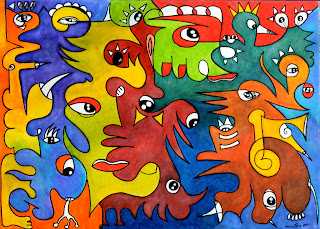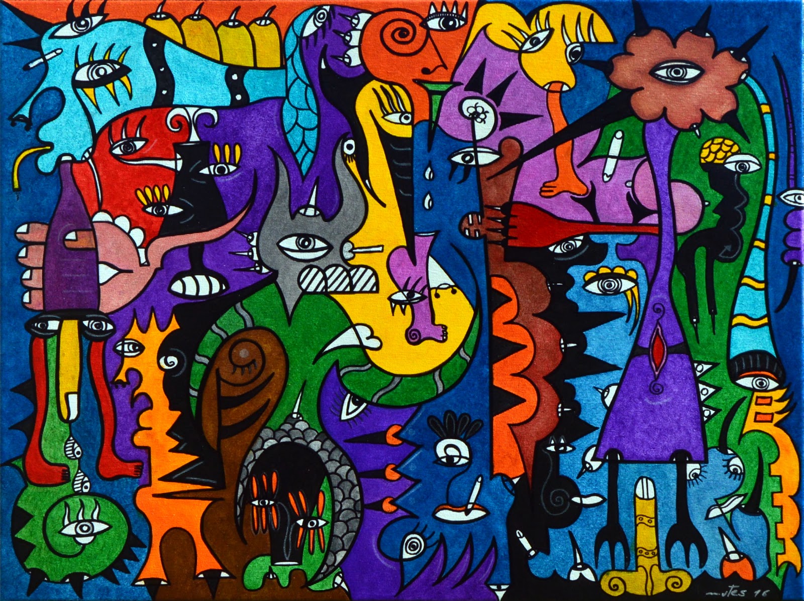 - Rompendo com os padrões estéticos que primam pela perfeição das formas na busca da imagem realista, nesta minha colecção designada (Des) Cubismo Contornismo, busco a desestruturação da obra em todos os seus elementos. Decompondo a obra em partes, através de figuras mutantes imaginárias, registo os elementos em planos sucessivos numa visão total da figura. Através de estranhas e variadas formas com o predomínio de linhas curvas e rectas, desestruturo as figuras e os objectos, movimentando-os em torno de si próprios através da sua fragmentação, dando abertura e apresentando todos os seus lados num plano frontal em relação ao espectador.